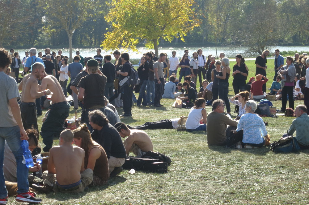 Sous le symbole de la Renoncule à feuille d’Ophioglosse, la fleur de Rémi, 300 à 500 personnes se sont réunies pour un pique-nique, qui a été suivi d’une minute de silence et de plusieurs prises de parole.