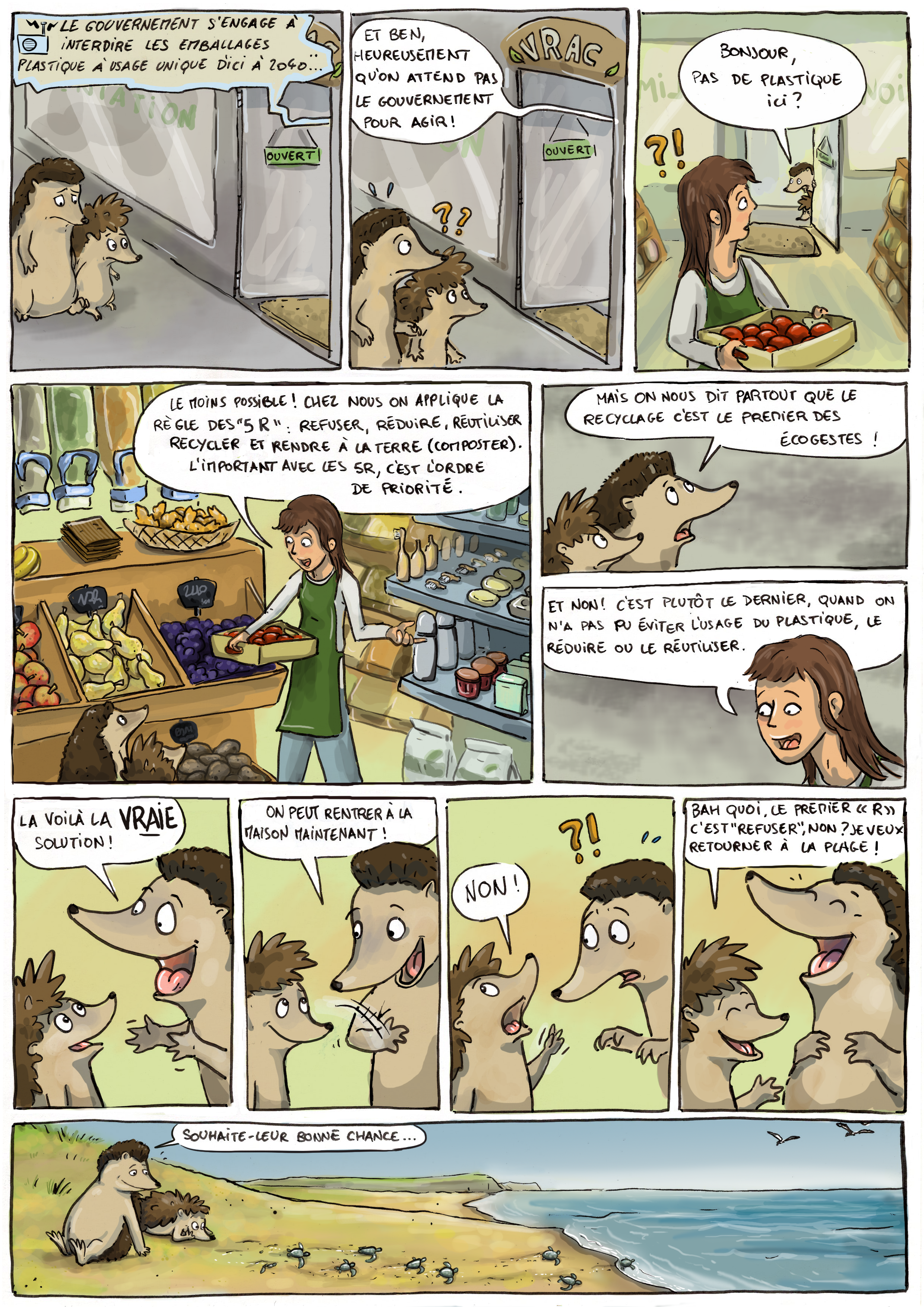Dans le cadre de la Semaine Européenne de Réduction des Déchets (SERD), nous publions une bande dessinée « Mer de plastique, marre des plastiques ! ». 7 jours : 7 épisodes. Épisode 7 : Un monde avec moins de plastiques, c’est possible ! N’attendons pas 2040 pour appliquer la règle des 5R !